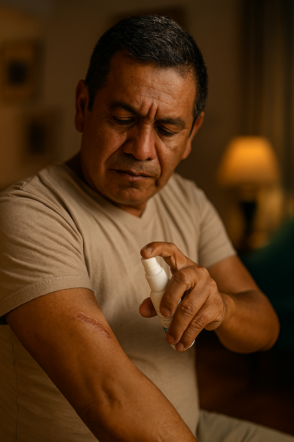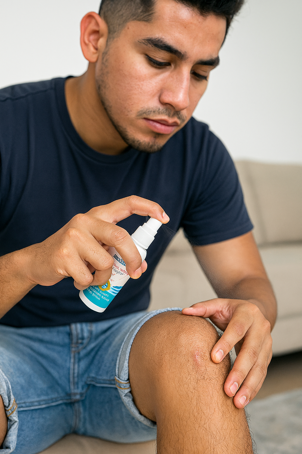 Limpia suavemente la zona, aplica el spray 2 veces al día para ayudar a reducir la cicatriz quirúrgica desde las primeras semanas.